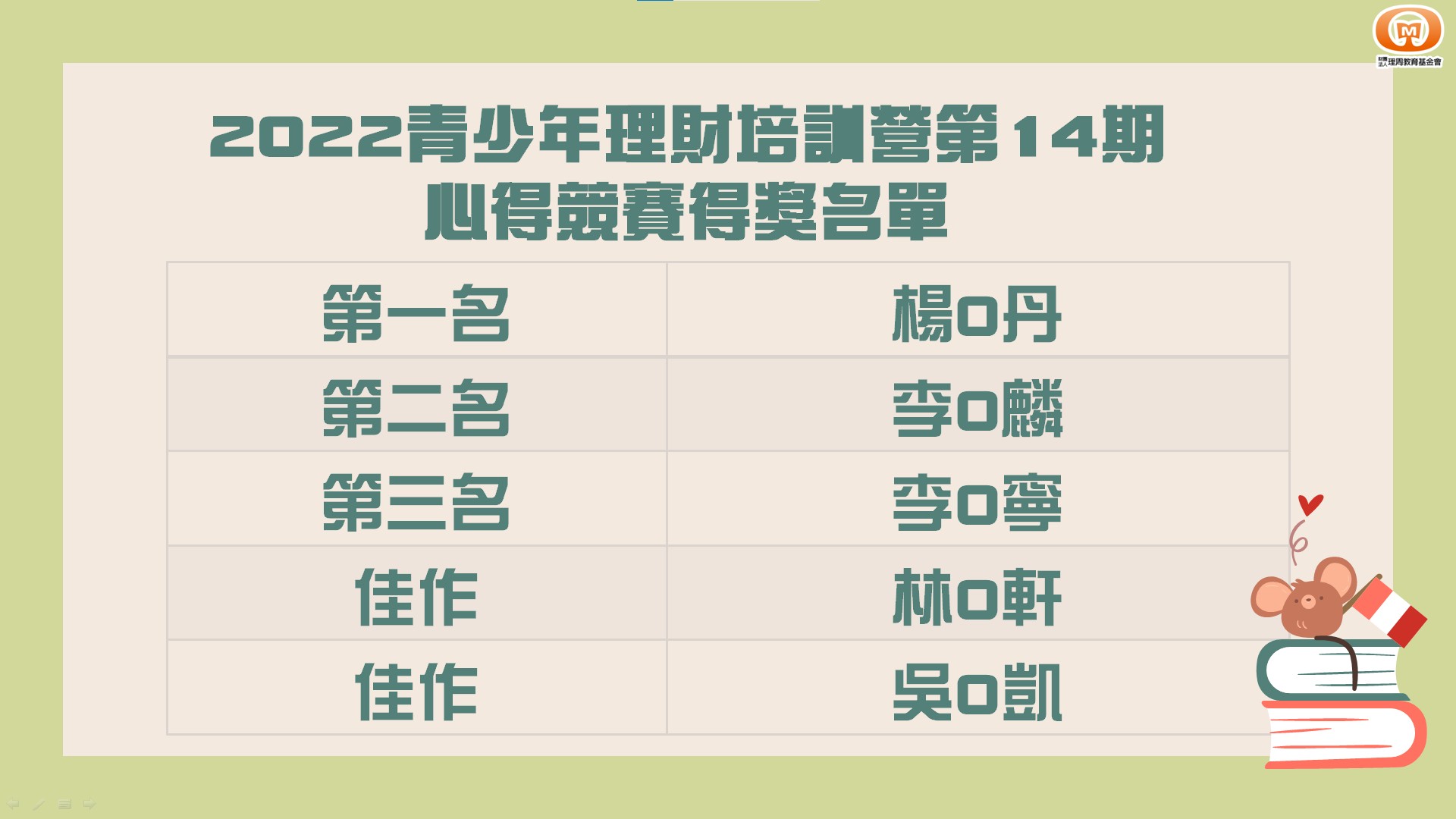 2022年青少年理財培訓學習營公佈得獎名單
