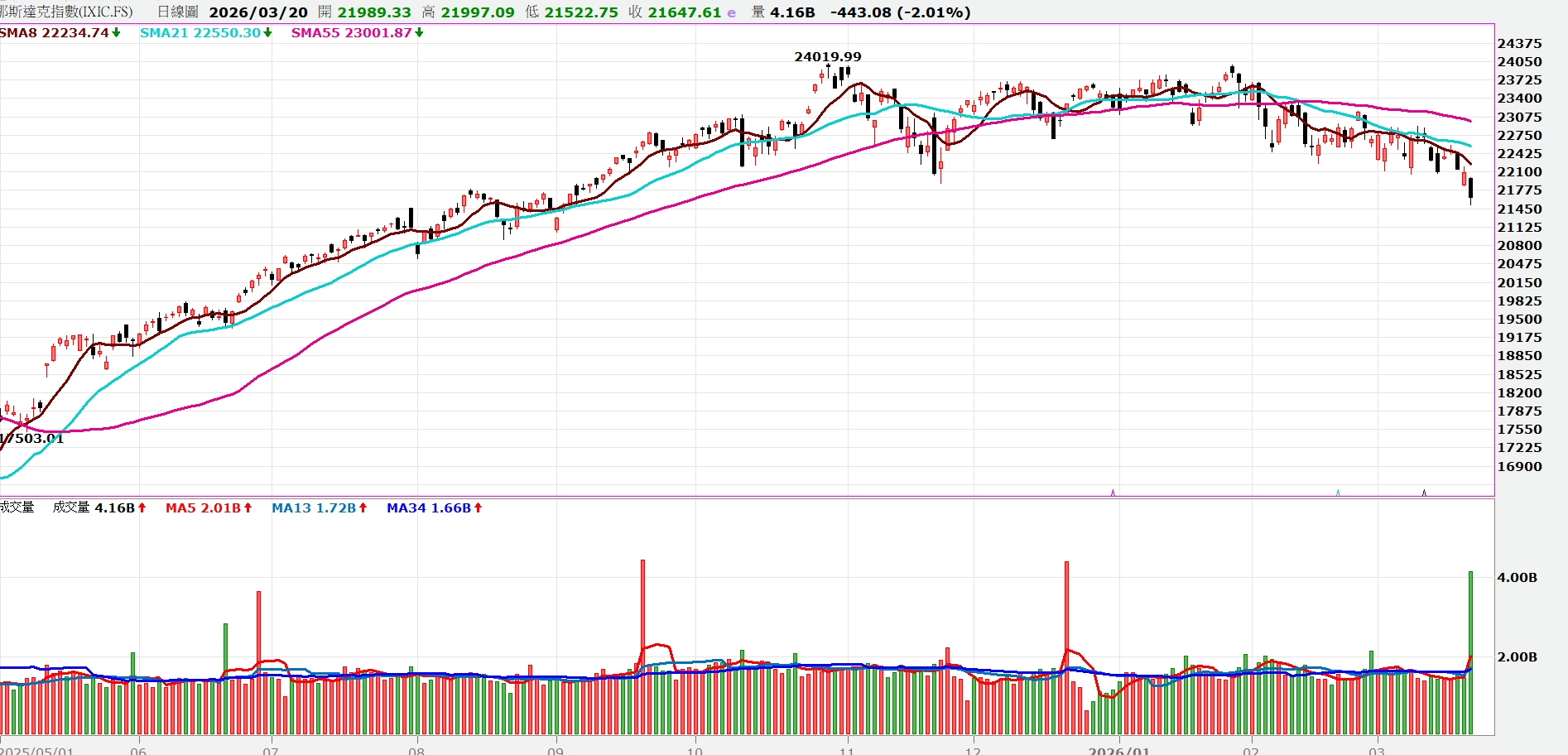 技術面本質反映的是市場人心。若戰爭出現明確利多(如降溫或結束),NASDAQ指數仍需出現具力道的反彈,才有機會扭轉當前偏弱的短線結構。