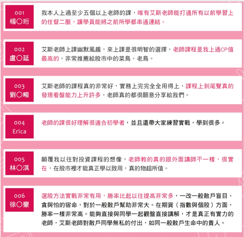 已培訓出多名百萬操盤手學員、且在台灣各期貨商業內均有其學員