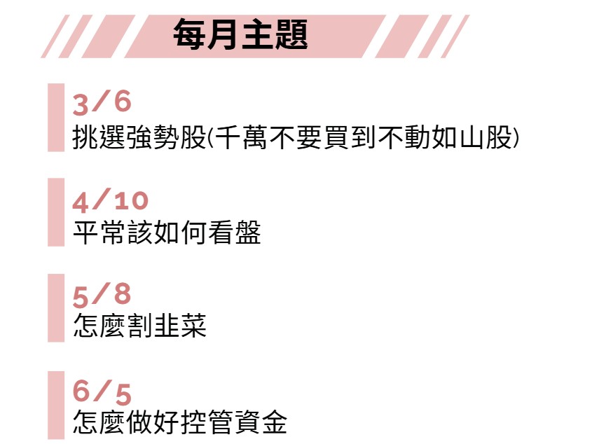 每場同學會除了貼盤的觀察重點,也會有「當月主題」