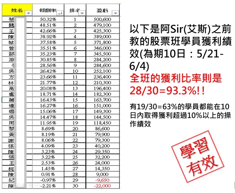 經1000名學員以上見證,團體班學員操作實證獲利率70~80%以上!