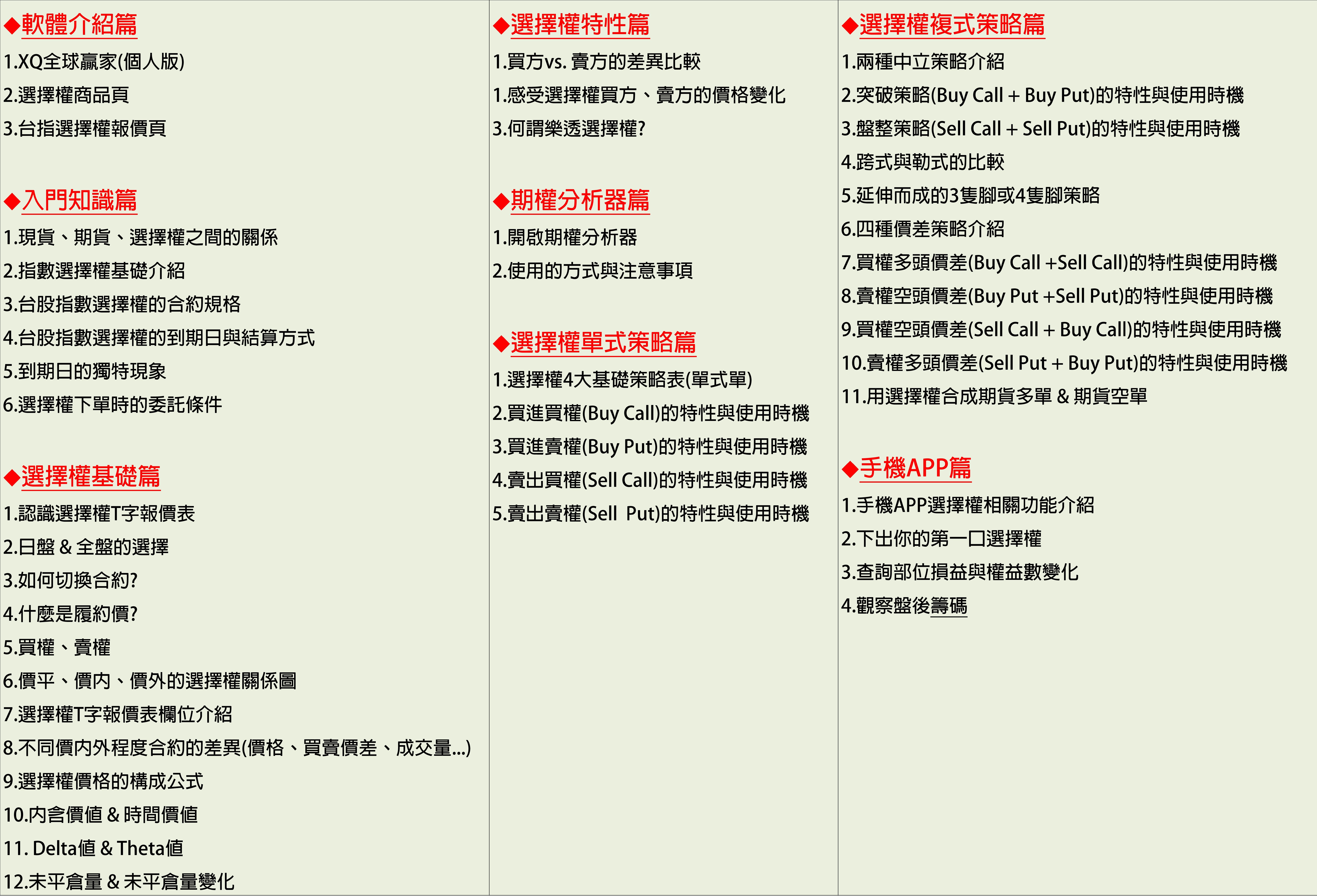 • 還沒接觸過選擇權,但有興趣想要學習,進入這個多采多姿世界的投資人