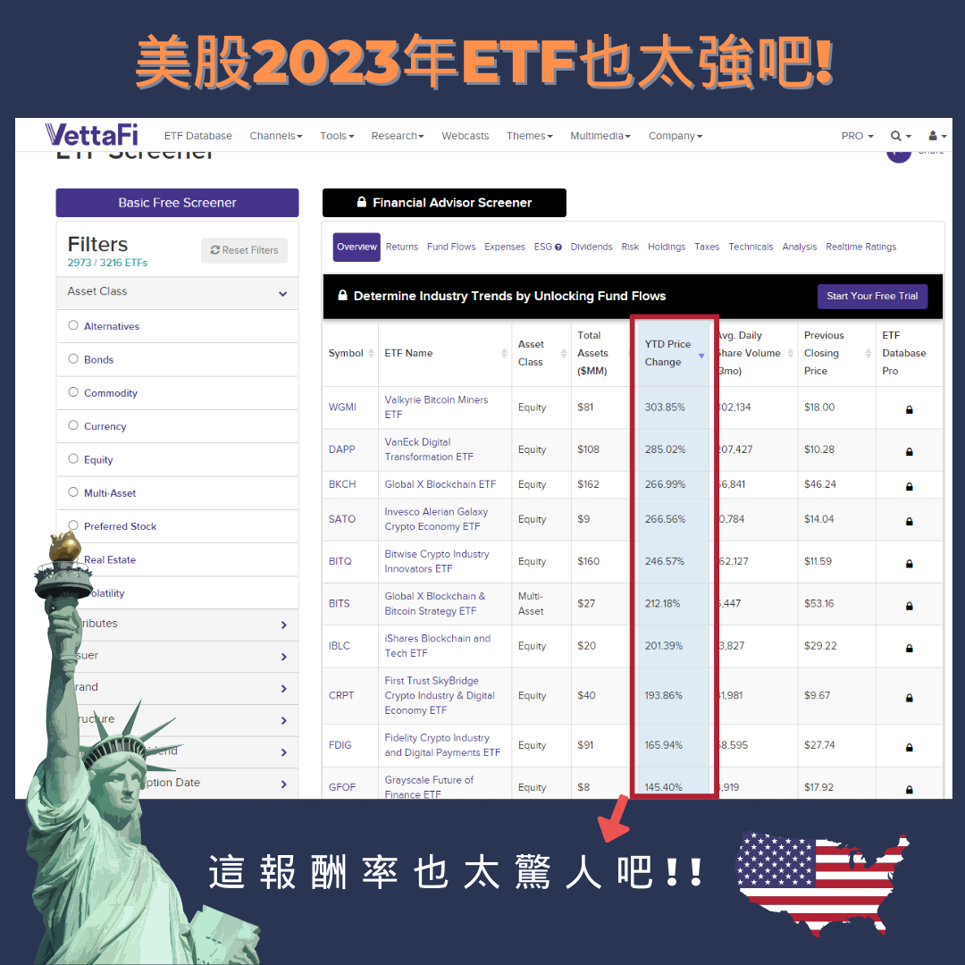 去年2023剛結束,如果美股的一檔ETF去年整年漲50%