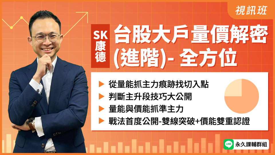 3.    SK康德老師首次公開台股獨家戰法,如「雙線突破」、「量價雙重確認」等致勝策略思維。