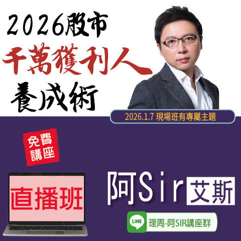 阿Sir.艾斯實戰菁英操盤班◆直播 2026/6/26(五)、7/3(五...